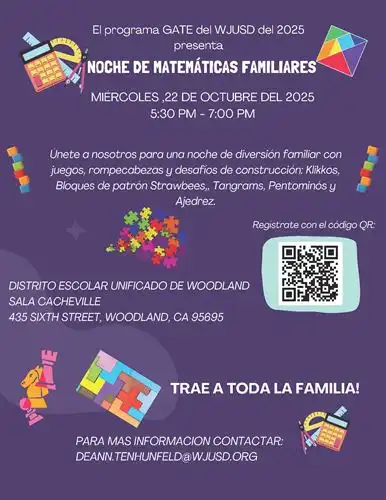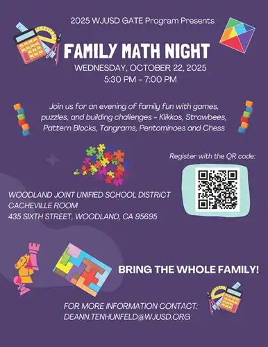 If you are in High School and interested in volunteering for Family Math Night and earning volunteer hours, email deann.tenhunfeld@wjusd.org.